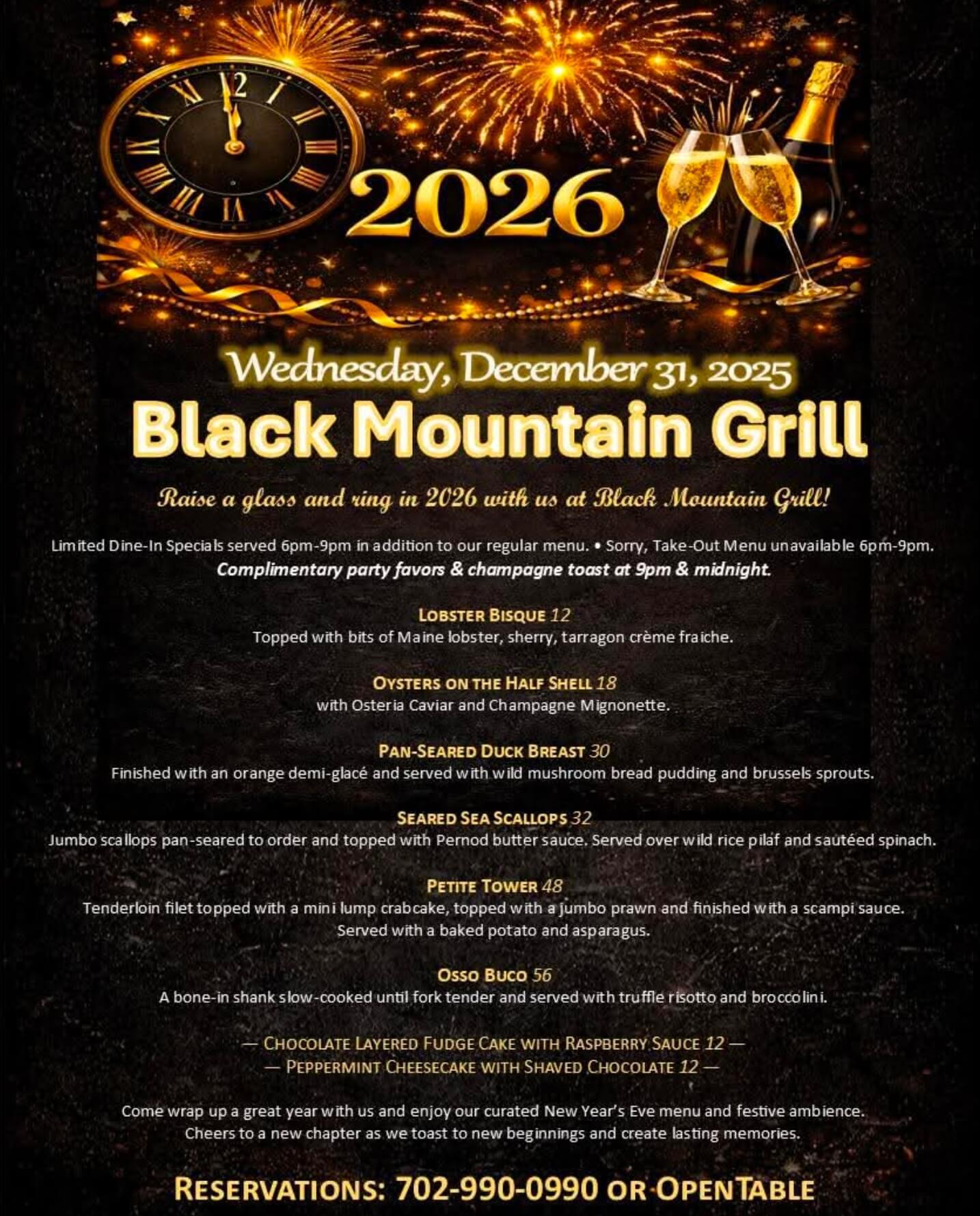 Raise a glass and ring in 2026 with us at Black Mountain Grill!